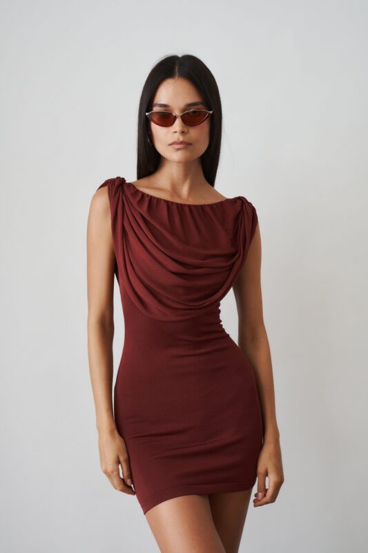 The Mist Mini Dress drapes with quiet allure, designed in a rich Berry tone that feels both bold and timeless.