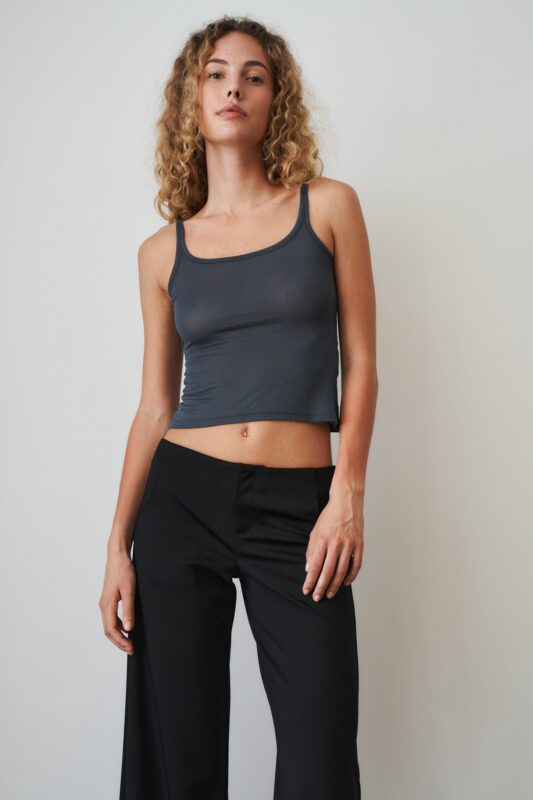 Effortless and essential. The Scoop Tank in blue-grey is a minimalist staple designed to sit close to the body, crafted