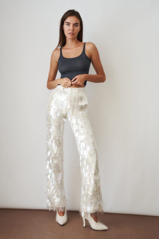 The Carrie Top is a romantic knitted camisole designed to flatter and sculpt with effortless grace. Crafted from high-twist core-spun